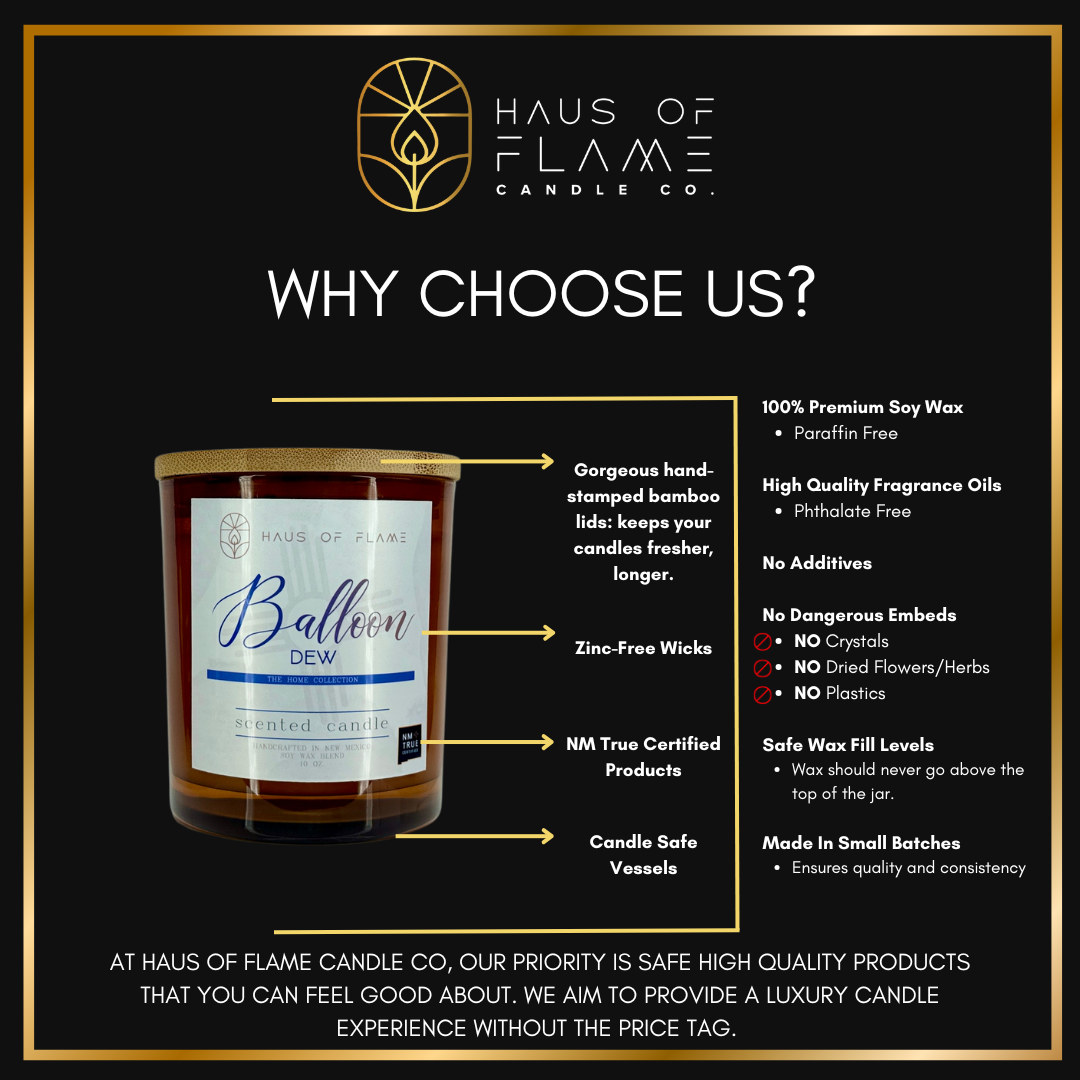 At Haus of Flame Candle Co., we are committed to providing high-quality, clean products that elevate any space, whether it’s your home or a home away from home. Our goal is to offer more than just candles; we’re dedicated to giving you a sensory experience that enhances your surroundings and evokes meaningful moments.