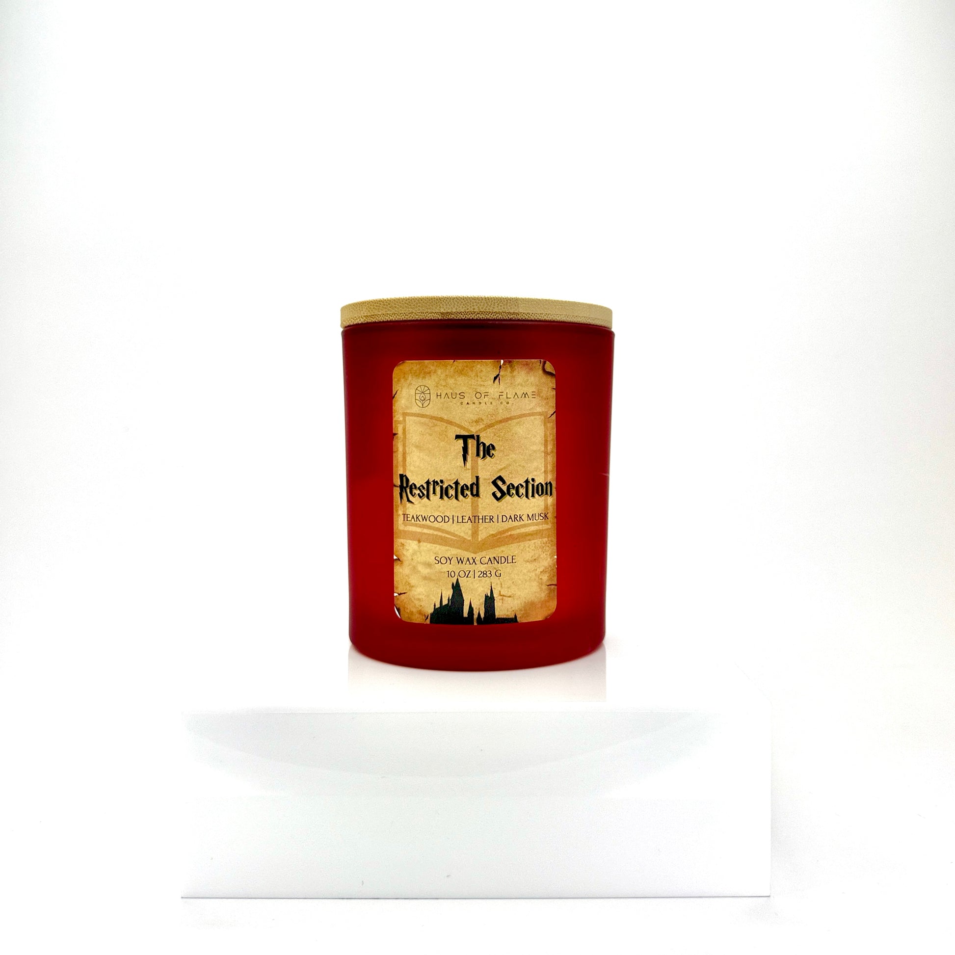 Unlock the magic of The Restricted Section, a captivating candle from Haus of Flame Candle Co. designed to transport you to a world of enchantment and adventure. Infused with a dazzling shimmer, this alluring fragrance combines the richness of teakwood, the sophistication of leather, and the mysterious depth of dark musk. Evoking the charm of secret libraries and hidden treasures, this candle is perfect for creating an atmosphere of wonder.